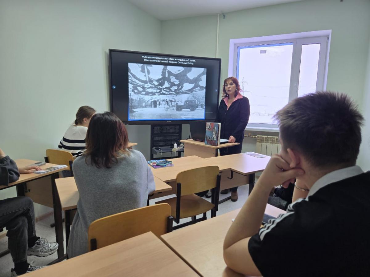 Для того, чтобы студенты Чукотского северо-западного техникума г. Певека прониклись самыми трагическими событиями в жизни страны в годы войны, главный библиотекарь отдела массово-информационной работы и некоммерческих услуг Анна Гусарова, провела час истории «Страницы мужества и славы».