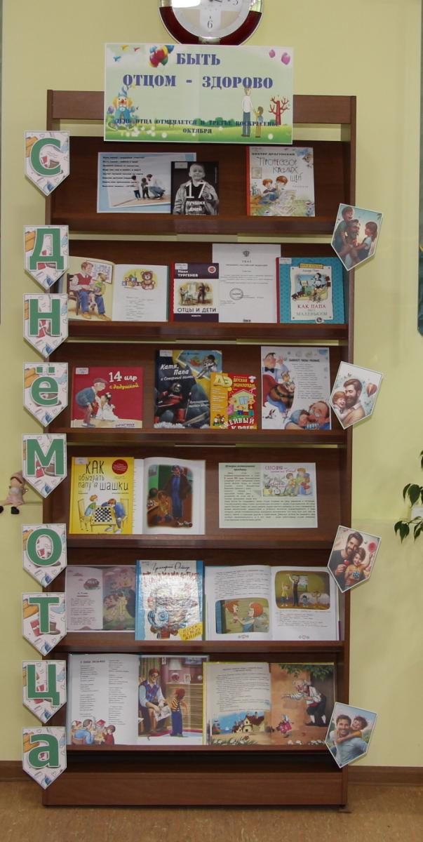 В 2025 году праздник выпадает на 19 октября. К этой дате в Отделе по обслуживанию детского населения оформлена книжная выставка «Быть отцом – здорово».