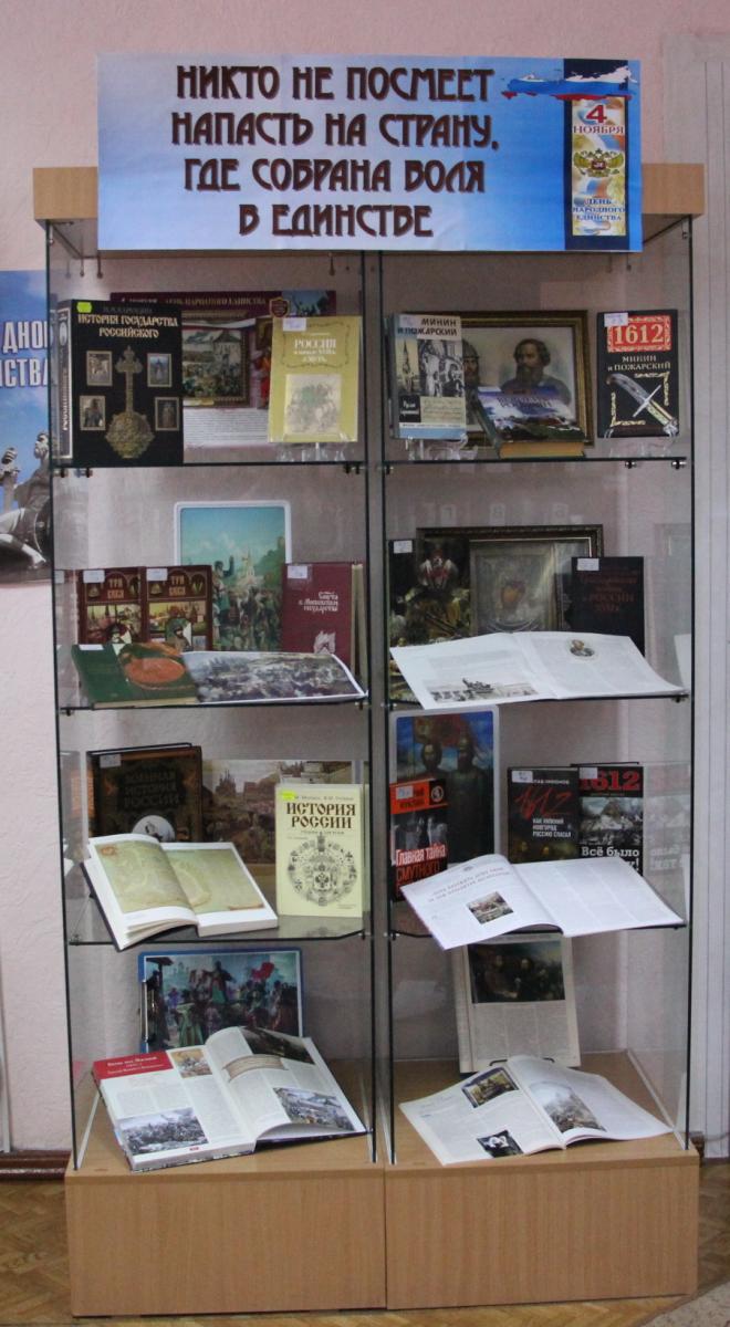 В преддверии праздника в Отделе массово-информационной работы и некоммерческих услуг развёрнута книжно-иллюстрированная выставка «Никто не посмеет напасть на страну, где собрана воля в единстве».