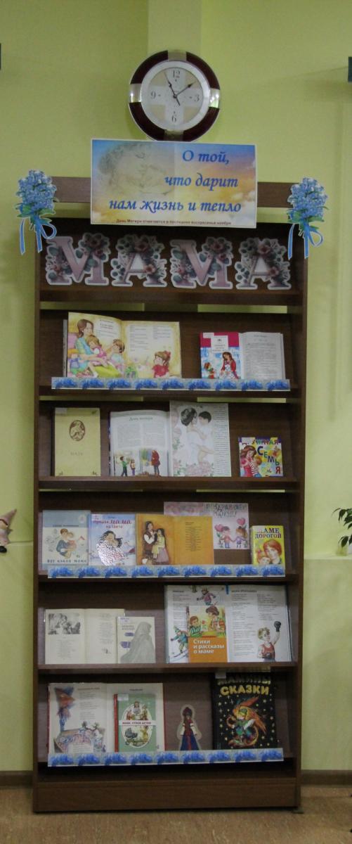 В преддверии праздника в отделе по обслуживанию детского населения сотрудники оформили книжную выставку «О той, что нам дарит жизнь и тепло».