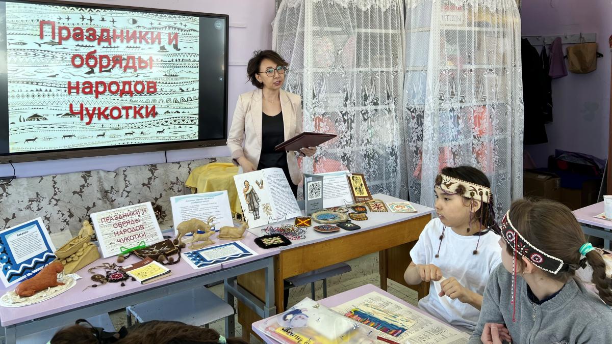 В преддверии праздника заведующая отделом массово-информационной работы и некоммерческих услуг Жаргалма Дашиева провела для учащихся художественного отделения Певекской школы искусств познавательный час «Хранители солнца и моря: праздники и обряды чукотского народа».