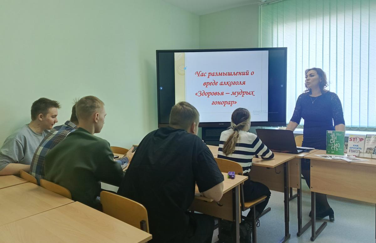 Студенты познакомились с понятием «алкоголь» и «алкогольная зависимость», с тремя стадиями развития зависимости, которые играют решающую роль в формировании алкоголизма. Узнали десять мифов о безвредности и вреде спиртосодержащих продуктов, с признаками, указывающими на алкогольную зависимость и как с ней бороться.